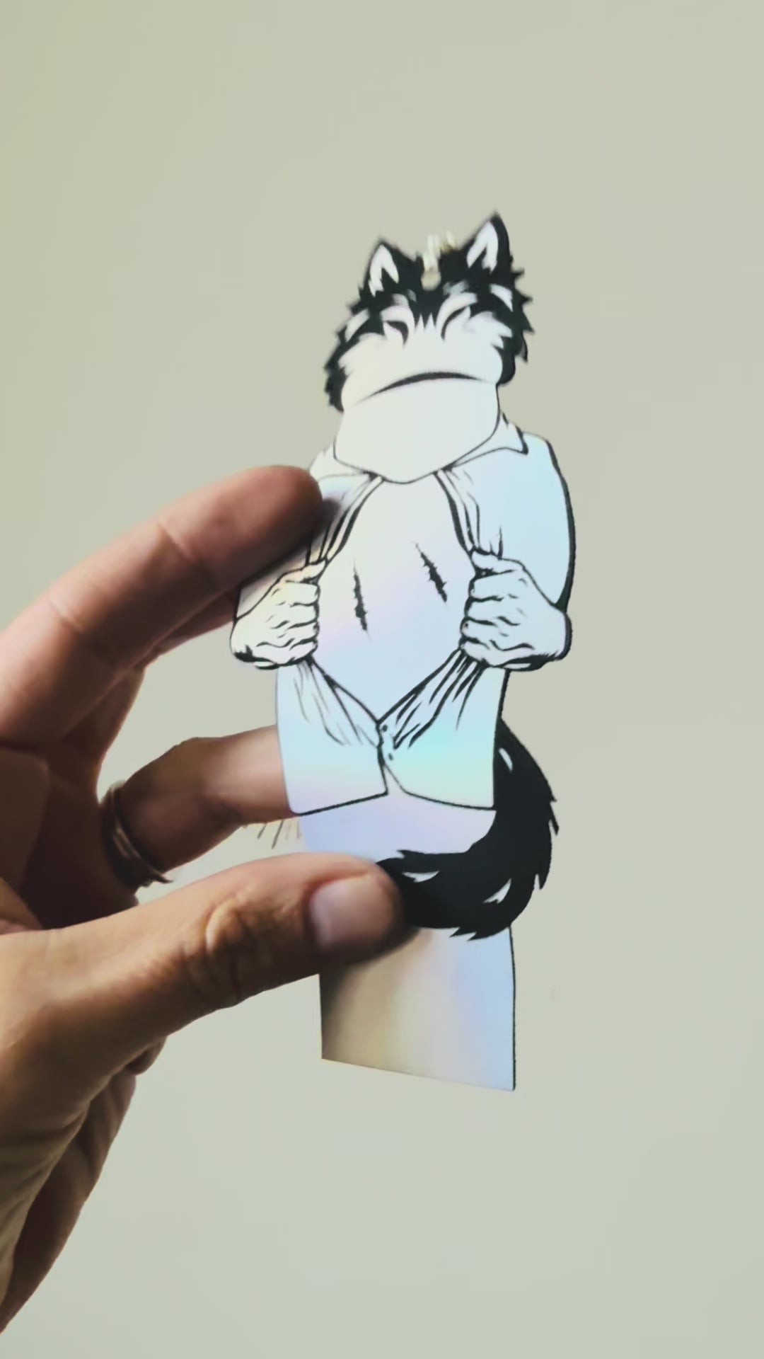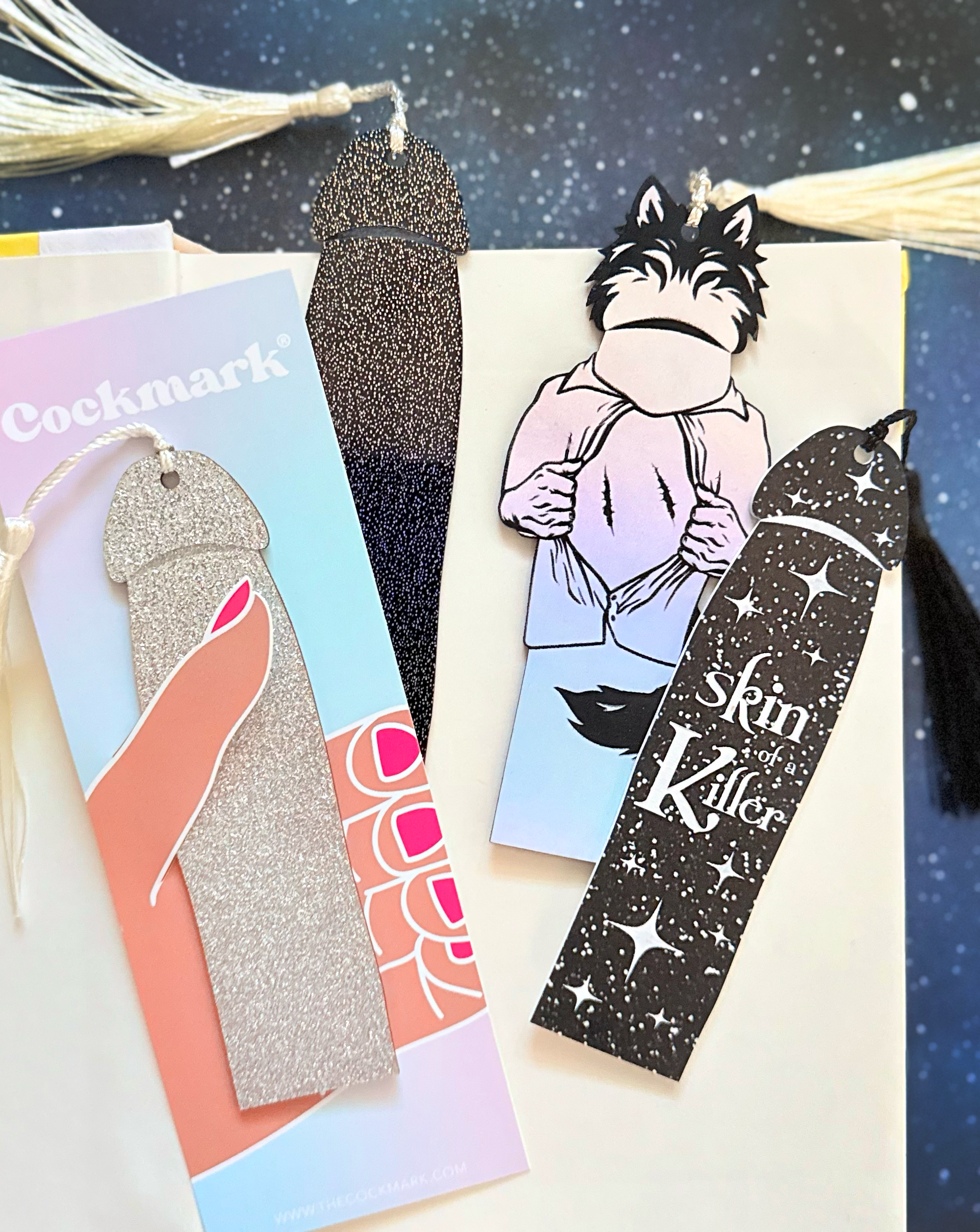 Werewolf Cockmark made in a holographic leatherette! Flexible, bendy...just the way we like it. Topped with a creamy tassel and cozied up in our iconic hand sleeve and cellophane sleeve.